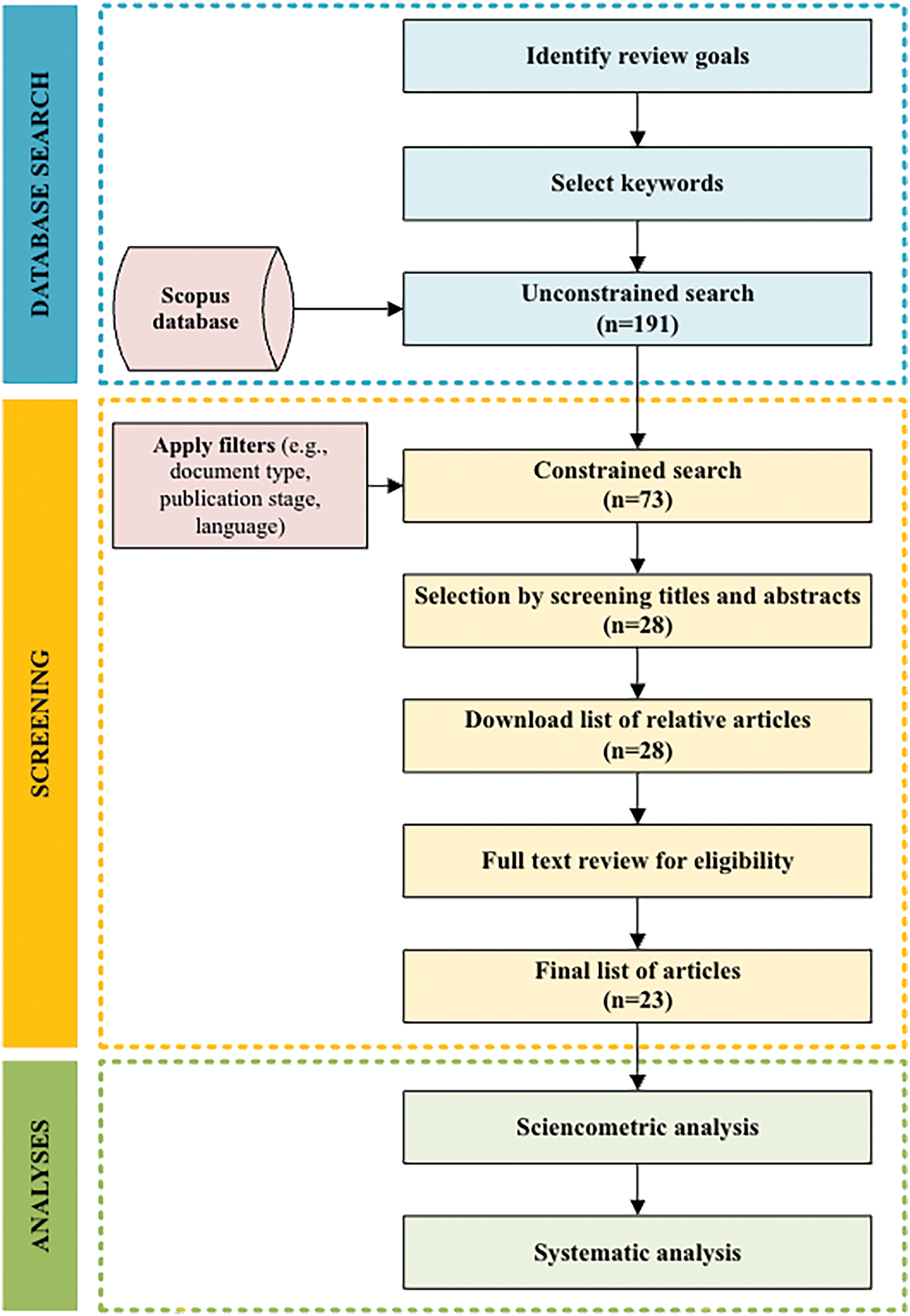 This study applied a mixed review methodology, integrating scientometric and systematic analyses, an approach widely recognized for delivering comprehensive insights into research domains.13–15 The scientometric analysis was utilized to examine annual publication trends, relationships among journals, citation patterns (including highly cited articles and influential journals), and frequently used keywords. The scientometric review was supported by text-mining software (e.g., VOSviewer), helping to enhance objectivity and minimize subjective bias in the findings.