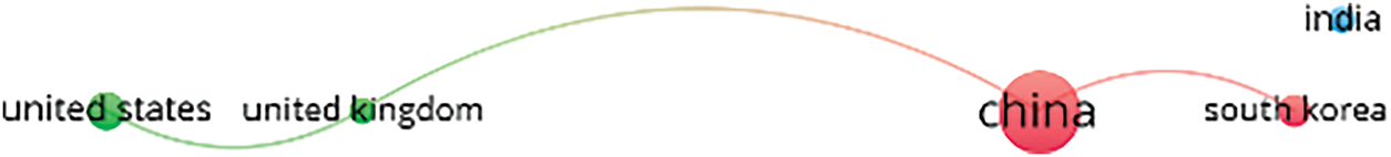 In Fig. 3, the size of each node corresponds to the number of articles published by each country. For example, China (19 documents), the United States (4 documents), and South Korea (3 documents) are represented by larger nodes compared to others. The color groupings in the bibliometric networks indicate distinct clusters of international collaboration. Table 3 summarizes the contributions of all 11 countries analyzed, highlighting the five countries with the highest citation counts: China, Australia, the United States, the United Kingdom, and South Korea. This table provides additional insights into the global collaboration networks and the international significance of the studied research area.