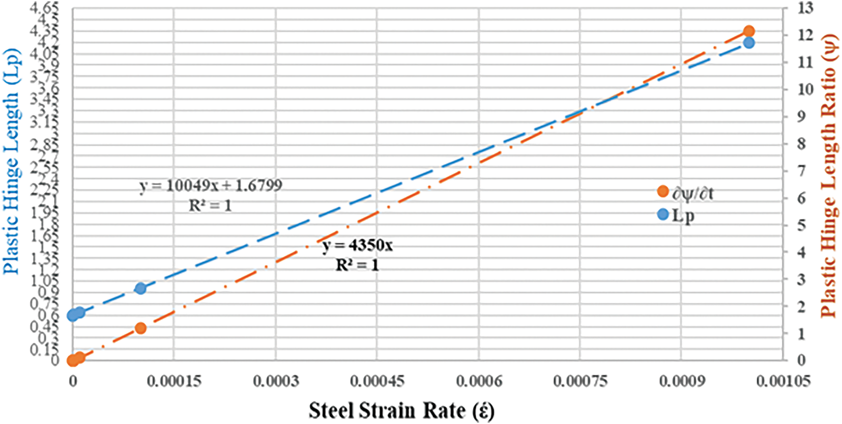 Figure 2. Steel strain rates with rate of formation of plastic hinge length ratio