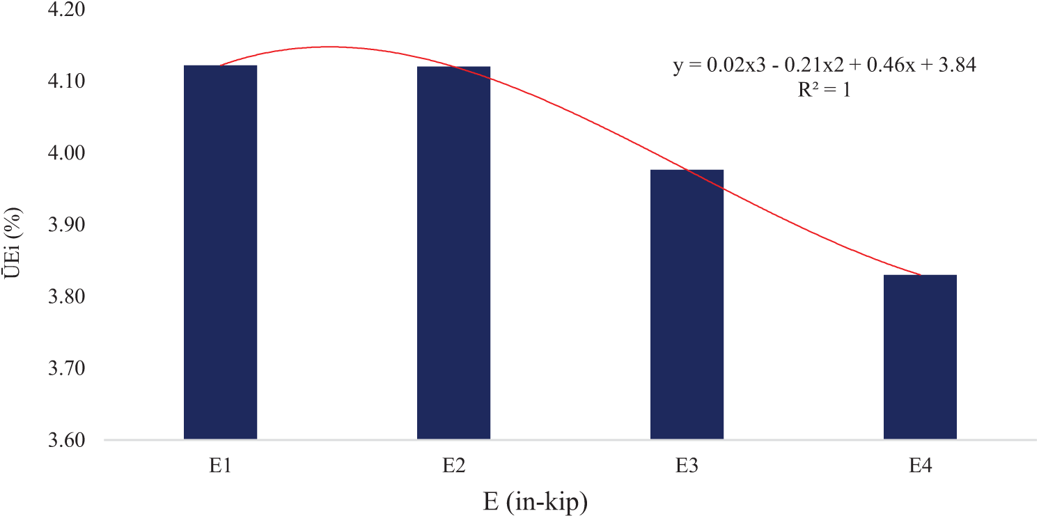 From the plotted Fig. 14, the estimated ŪEi for the corresponding Ei has been plotted with tight R2 values of 1.0, representing third-degree polynomial equations. This has been captured from Fig. 12 and is shown in Eqs. (42).