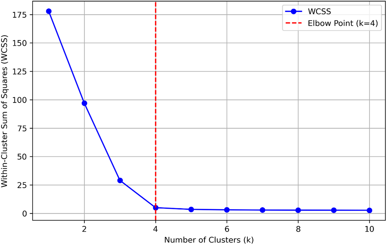 The primary objective of K-Means is to minimize WCSS from Eq. (2), which quantifies the total squared distance between each data point and its respective centroid.28