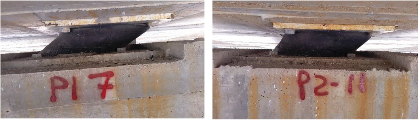 In conclusion, from the structural point of view, some interventions were carried out: (a) controlled demolition of the abutment back-walls in the contact areas with the beams and reconstruction of the back-walls to restore the original gap size; (b) replacement of deformed bearing devices (lifting of the superstructure, removal of the deformed elastomeric bearings as shown in Fig. 5 and positioning of new ones).